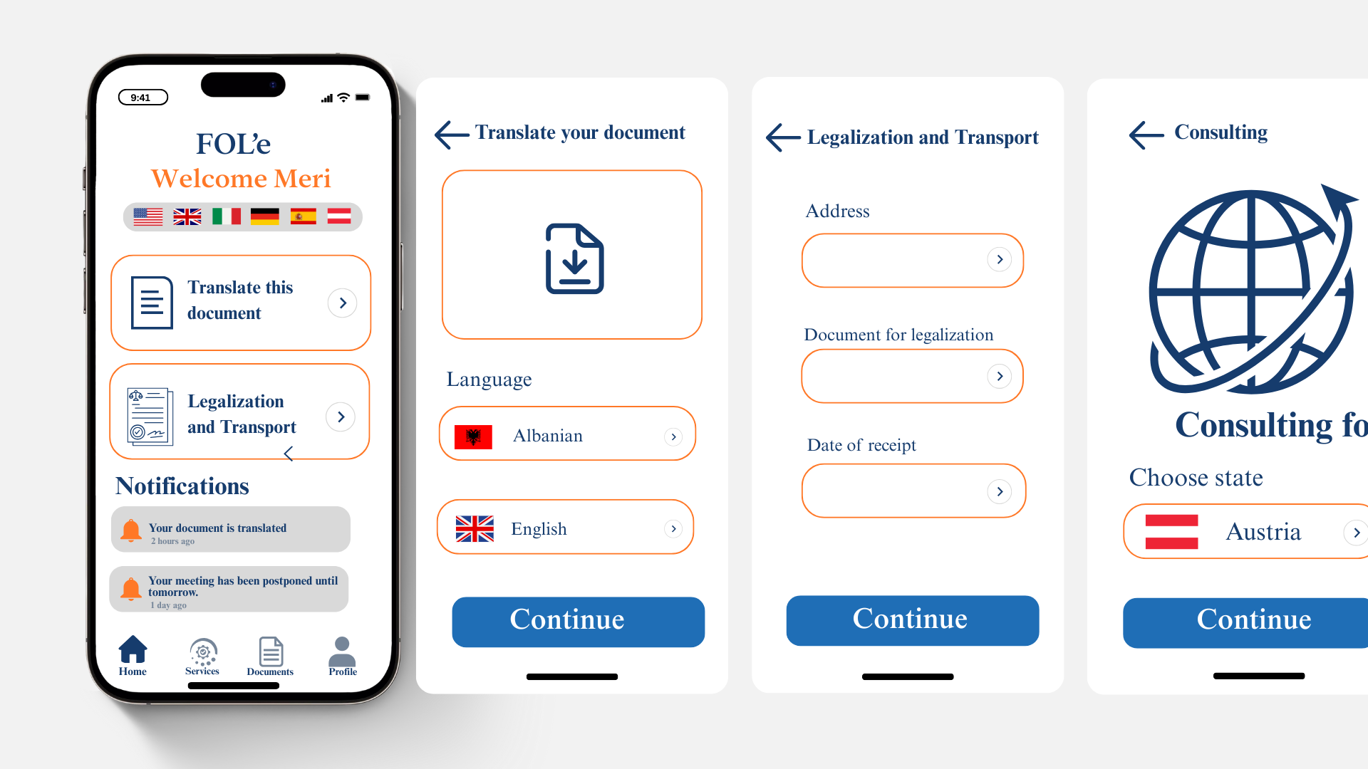 - FOL’e is the first platform in Albania to get legal consultations, translations, notarizations, document legalization, and visa application assistance, all from your couch, with a door-to-door delivery anywhere you are.
